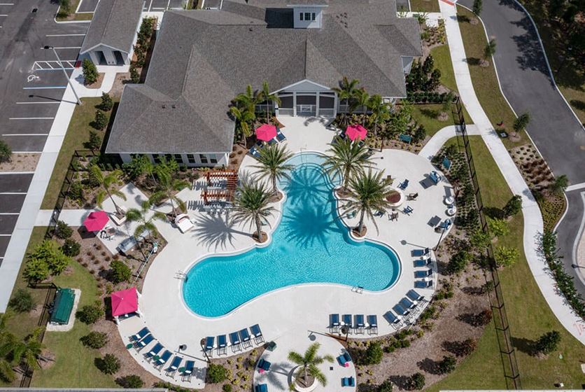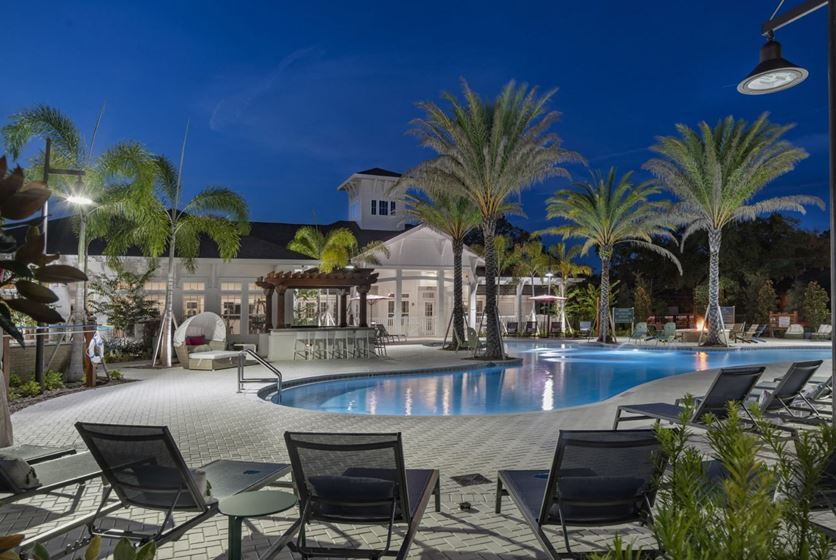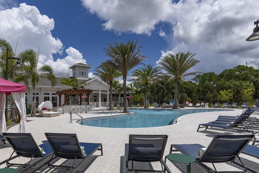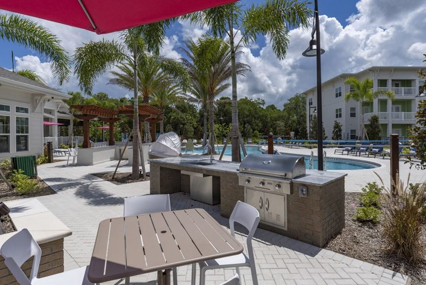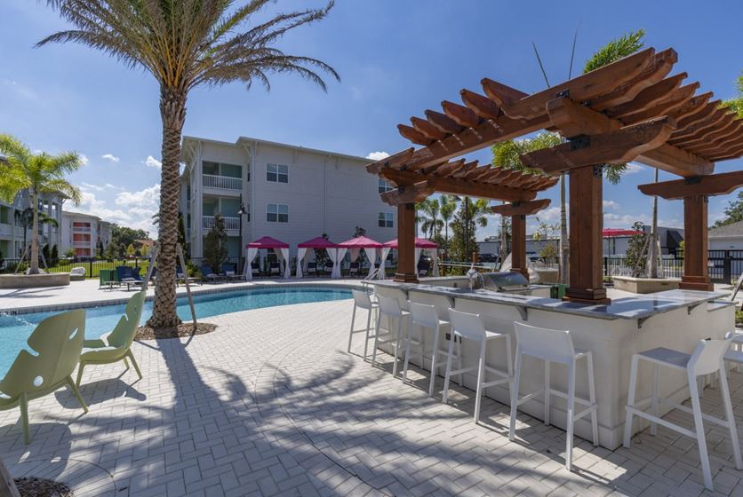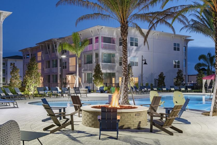 - An outdoor oasis awaits you! Let your worries disappear as you slip into the modern pool and lounge and prepare a meal for friends poolside at the outdoor grilling stations. When the weather cools off, hang out with friends at the poolside fire pit. Your stay-cation is in your backyard!