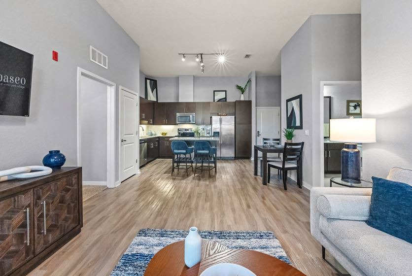 Paseo at Winter Park Village offers 1, 2, and 3 bedroom apartment homes adjacent to Winter Park Village shops, restaurants, movie theater, Publix, and more. This smoke free community has a parking garage, elevators, and air conditioned interior entryways leading into truly luxury apartments with high-quality features like wood-style flooring, granite countertops, and energy efficient stainless steel appliances.