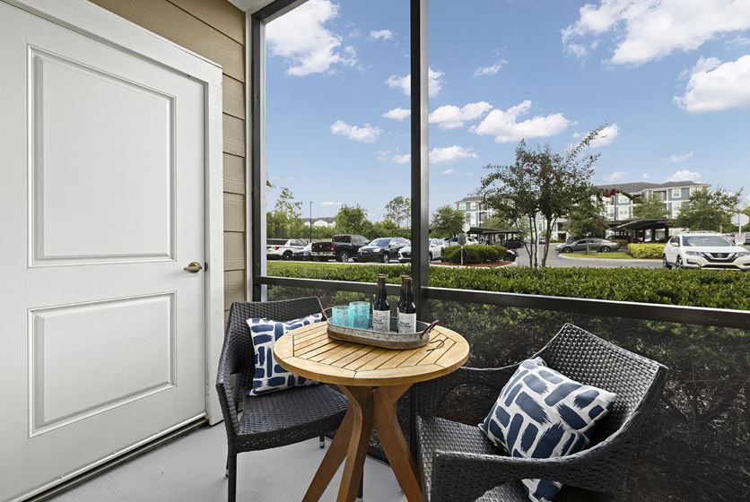 - Spacious, screen-in patios balconies in select apartment homes overlook relaxing nature views.