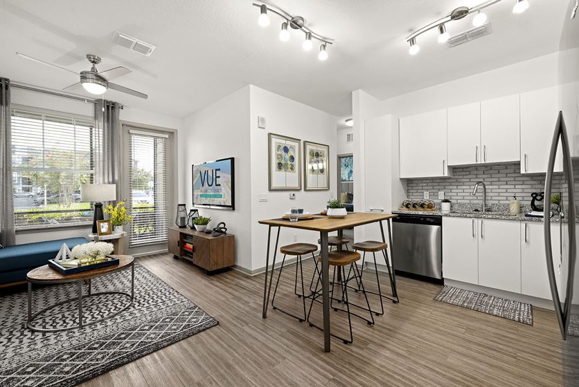 - The Vue has a modern floor plan for every family or professional, offering 1-, 2-, and 3-bedroom apartment homes with washers & dyers provided in every home.